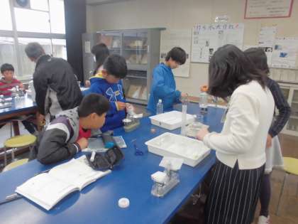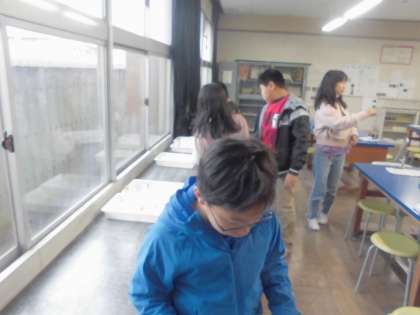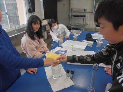 水に溶かしたホウ酸を、温めたり、冷やしたりして変化を見ました。