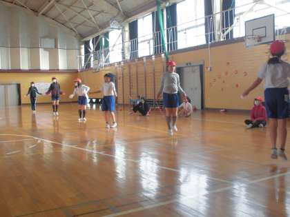なわとび大会に向けて【1月25日(金)の5年生】 公開日 2019/01/27 更新日 2019/01/27 5年 生き残り戦の練習と長縄の練習をしました。 みんなで声を掛け合って一回でも多く飛べるようになっています。