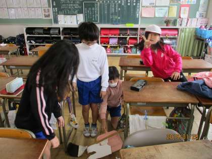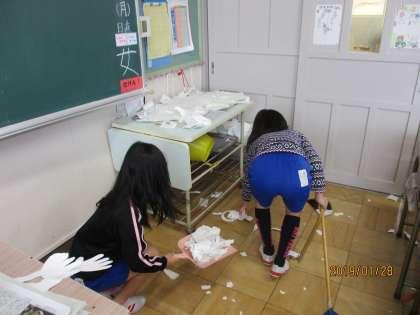 図工の授業の後に、進んでゴミを集めている姿を見つけました。