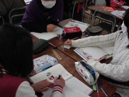 班で相談しながらより多くの漢字を使い文章を作っています!