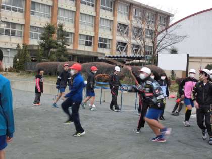 明日の縄跳び大会に向けて 【1月28日(月)の6年生】 公開日 2019/01/29 更新日 2019/01/29 6年 明日はなわとび大会です!本日の体育の授業ではなわとび大会の練習をしました!なわとび大会みんな頑張って!!