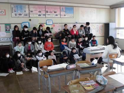 音楽の時間の様子です。卒業式で歌う歌のパート分けをしていました。