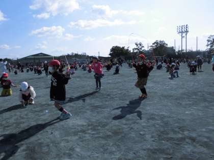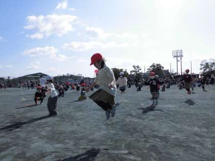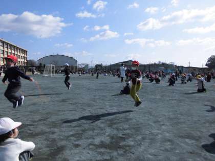 はじめてのなわとび大会 その1【1月29日(火)】 公開日 2019/01/29 更新日 2019/01/29 1年 冷たい風の中、なわとび大会がありました。2学期終わりから練習してきた両足後ろ跳び。2学期は、30秒間跳び続けられる子がほとんどいなかったのが、3学期になって続けられる子が増えてきました。みんなよく頑張りました。