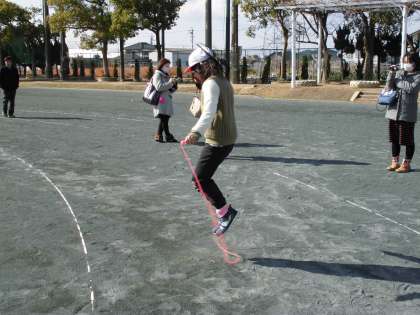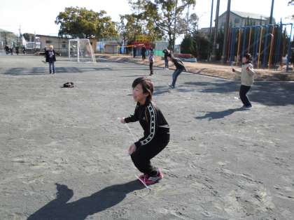冷たい風にも負けず、30秒間一生懸命跳びました。