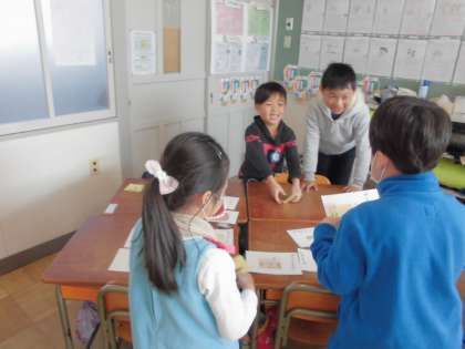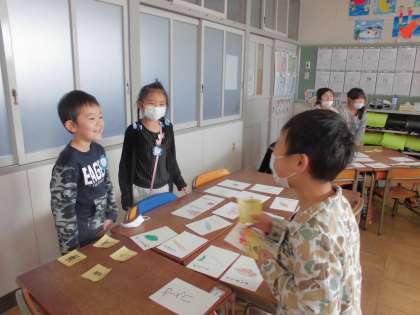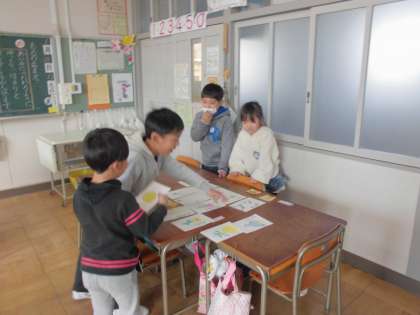 おみせやさんごっこをしたよ その2【1月29日(火)の1年生】 公開日 2019/01/30 更新日 2019/01/30 1年 相手に伝えるために、はっきりと、聞きとりやすい声の大きさでゆっくりと話すことに気をつけました。「いまならあいてますよ!」「またきてくださいね。」など、お店屋さんになりきり、話すことができました。楽しかったね。