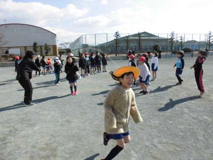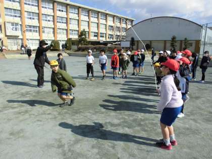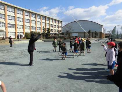 八の字跳びをみんなでがんばりました。練習の成果が出せました。