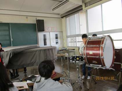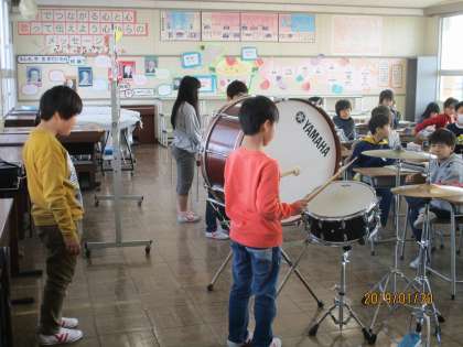 音楽では、リズムに合わせて太鼓やシンバルを打ちました。