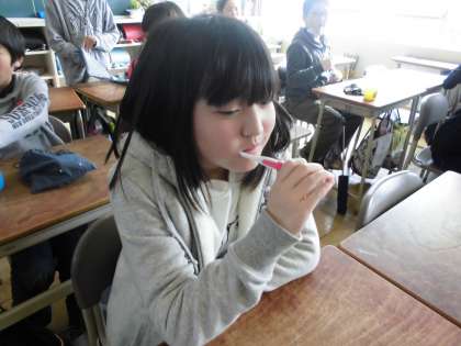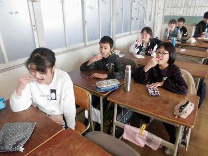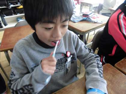 歯磨きタイム、みんなでしっかりと取り組んでいます。