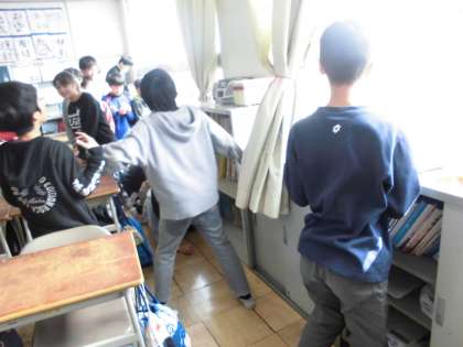 ふれあいタイムの様子です。宝探しゲームをしました。大盛り上がりで、全員で楽しみました!!