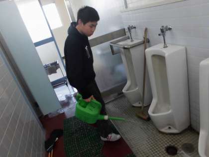 感謝の気持ちを込めて、学校のトイレを掃除しました。