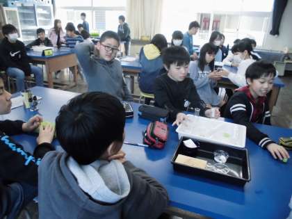 今日は理科室で実験でした。