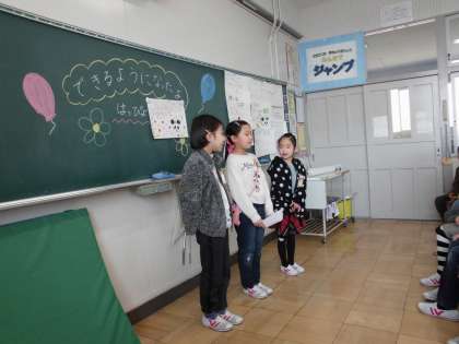 生活科の学習で、2年生になってできるようになったこと、授業で学習したことをグループで発表しました。