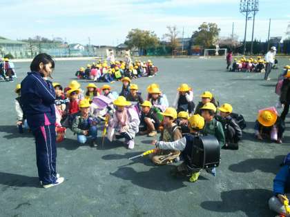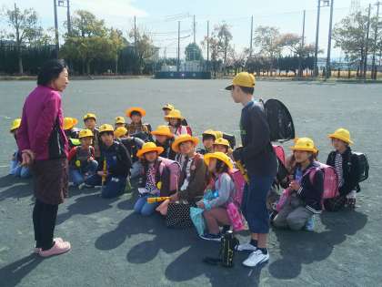 本校では、月に1回、一斉下校の時間を使ってミニ通学団会を行っています。登下校で困っていることや下級生に合わせて歩くことができているかどうかについて、班長・副班長が担当の先生に伝えました。また先生からは班長旗の使い方や2列歩行などについての指導を行いました。こうしたミニ通学団会を通して、安全に登下校しようとする意識を高めていきたいと思います。