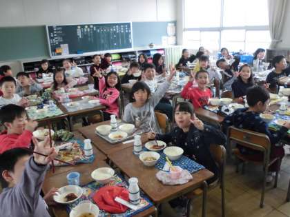強い風のため、桜の花も多くが散ってしまいました。今週1週間で、新しい学級・先生にもなれ、給食の時間もとても楽しそうです。