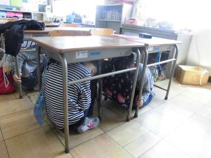 避難訓練がありました。自分の命を守るために、真剣に取り組みました。