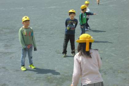 約束をしっかり守って上手に避難することができました。新しいボールを使って、外でドッチボールを楽しみました。