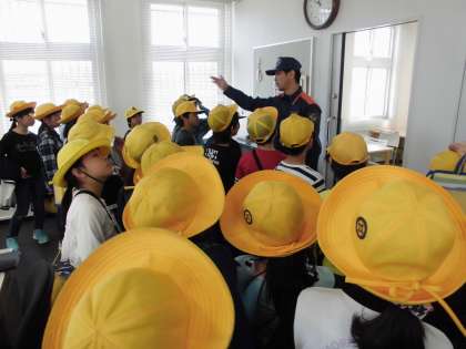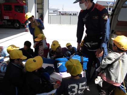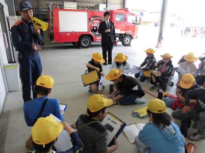 社会科の学習で消防署見学に行ってきました。興味津々にさまざまなものを見学したりお話を聞いたりしながら、たくさんのことを学ぶことができました。