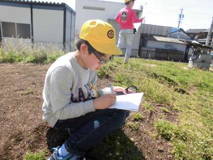 ルーペの使い方を覚え、植物や生き物の観察をしました。