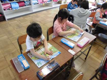 数図ブロックを使って、数の学習をしました。 手の挙げ方がすてきですね!