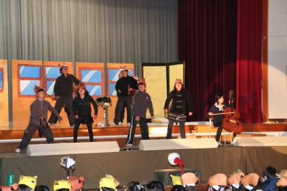 校内発表会をしました!(5年生) 公開日 2010/01/28 更新日 2010/01/28 5年 土曜日の学芸会本番を控え、全校のみんなの前で発表会をしました。緊張しながらも一人ひとりがきらきらと輝いた演技ができていました。当日もこの調子で、さらに輝く演技をめざしてがんばろうね。