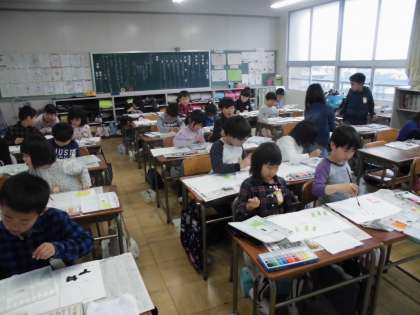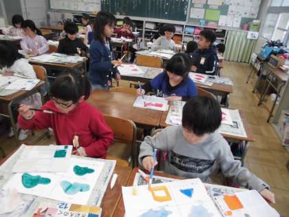 絵の具の使い方を練習しました。