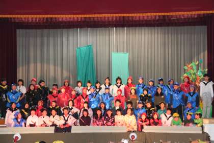学芸会校内発表 公開日 2010/01/28 更新日 2010/01/28 4年 学芸会の校内発表が行われました。みんなで力を合わせ、精いっぱい、歌って踊って、演技をしました。いよいよ明後日は学芸会本番。子どもたちの元気いっぱいの舞台を、是非ご覧ください。