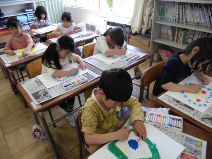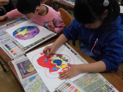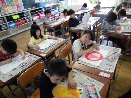 おひさまにこにこ その1【4月18日(木)の1年生】 公開日 2019/04/18 更新日 2019/04/18 1年 図工の時間にあったらいいなと思うおひさまをかきました。いろんな形や模様のおひさまをかき、ていねいに色ぬりしました。