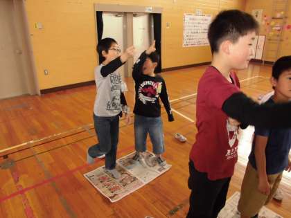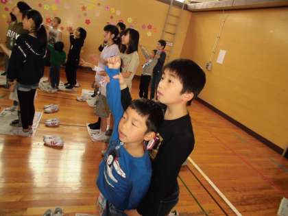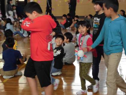 1年生を迎える会では、楽しいゲームをペアの友達と楽しみました。