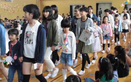 全校児童に祝福の拍手をしてもらいました。