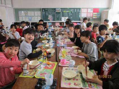 おいしく給食を食べています。