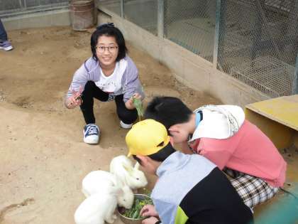 緑化飼育委員会では、毎朝交代で花の水やりとうさぎの世話をしています。