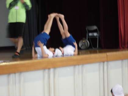 本日も運動会の組み立て体操の授業では、1人技と2人技を練習しました!