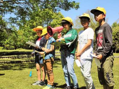 初夏を思わせる天候のもとで、本校の伝統行事であるふれあい遠足を実施することができました。学校から大野極楽寺公園までの道のりでは、ペア学年(1年と6年、2年と4年、3年と5年)の上級生が道路側になって歩くなど、下級生の安全を考えた行動が見られました。大野極楽寺公園では、まず全校児童で写真を撮ってから138タワーパークにかけて、ペア学年で作った班で、スタンプラリーを中心とした活動を行いました。上級生は下級生の歩くペースに合わせたり、下級生の荷物をもってあげたりして、班で協力してスタンプラリーを回ることができました。6年生は、安易に1年生をおんぶするなどして甘やかすのではなく、自分の足で歩けるところまで一緒に歩こうとする心遣いも見られ、相手の立場にたって見守ろうとする姿勢に感心しました。
