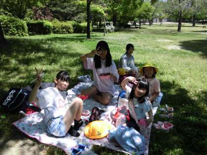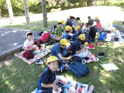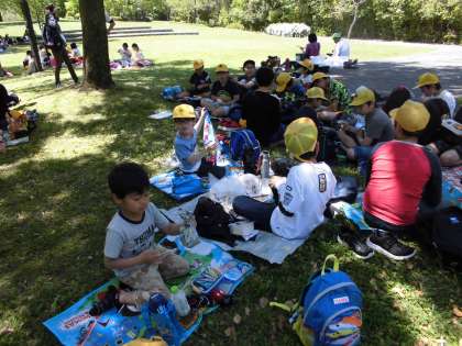 ウォークラリーでいっぱい歩いたり遊んだりした後、お弁当を食べました。