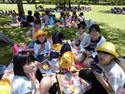 お弁当を食べた後、広場でいっぱい遊びました。