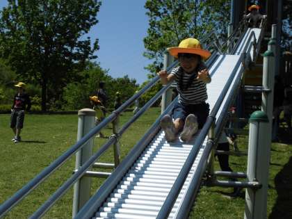ローラーすべり台で遊びました。スピードが出て面白かったね!
