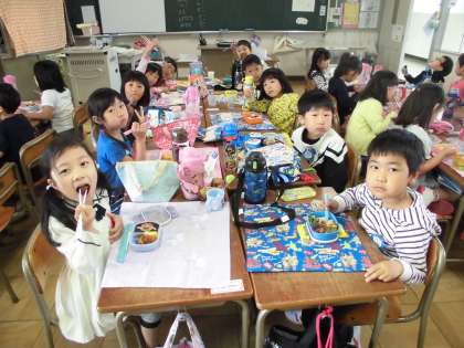 教室で食べるお弁当、とてもおいしかったね。