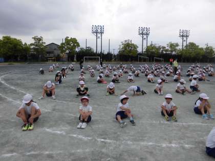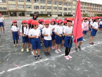 運動会の全校練習がありました。開閉会式の入退場の練習は初めてで、戸惑いながらも頑張りました。