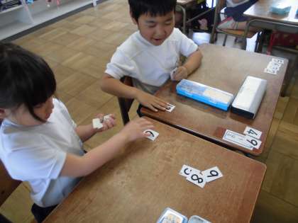 友達と楽しく勉強してるよ【5月14日(火)の1年生】 公開日 2019/05/14 更新日 2019/05/14 1年 算数の時間、隣の子と数の大きさ比べのゲームをしたり、何がどこから何番目になるかの問題を出し合ったりしました。クイズみたいで楽しそうでした。生活科の時間には、ひまわりやほうせんかなどいろんな種類の種を観察しました。