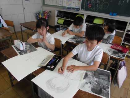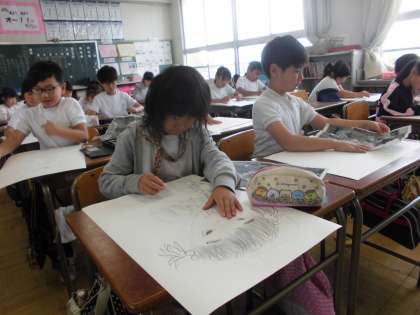 写生大会の下書きをしています。次は色塗りです。