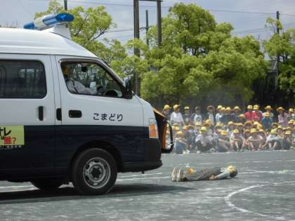 交通安全教室で衝突実験  【5月17日(金)の浅井中小】