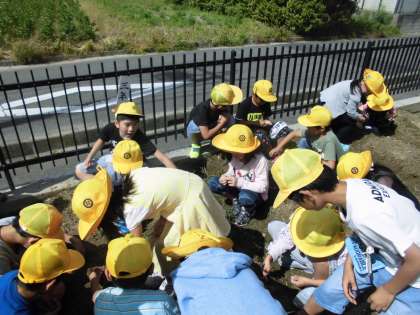 理科の時間です。今日は学年園にひまわりとホウセンカとオクラの種を植えました。
