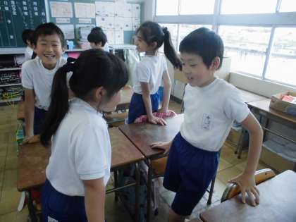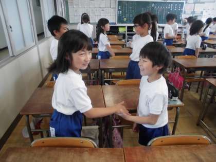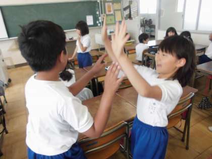 席替えで新しいお隣さんと自己紹介をしました。ハイタッチや握手もして、これから仲良くしっていけそうですね!!