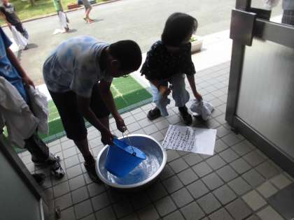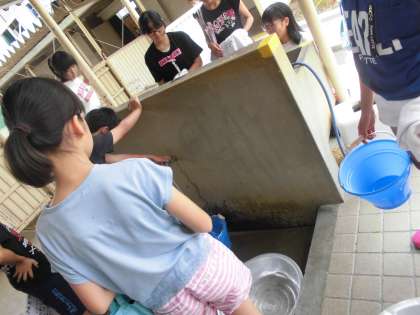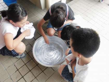 しっかり、汗をかきよごしてから、洗濯実習に臨みました。 みんなで協力して行いました。