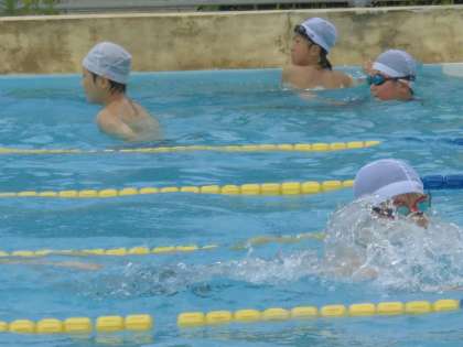 水泳の授業【6月21日(金)の5年生】 公開日 2019/06/22 更新日 2019/06/22 5年 水泳の授業では、より記録を伸ばすためにもくもくと練習しました。フォームやバタ足に気をつけて練習しました。