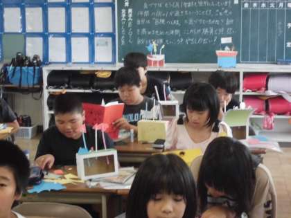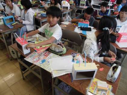 本日の図工の授業では、くるくるクランクづくりを進めました!仕組みをいかしてどんな作品が作れるかな??
