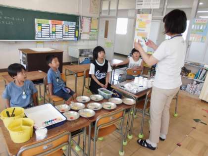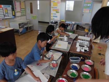活動の様子【6月27日(木)のたんぽぽ】 公開日 2019/06/27 更新日 2019/06/27 たんぽぽ 「かたおしであそぼう」の授業では、様々な形の野菜や型を使って押して遊びました。一生懸命掃除が終わった時間もピカピカにしようとがんばっています。