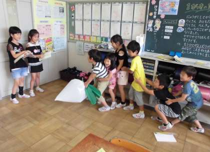おおきなかぶ!【7月12日(月)の1年生】 公開日 2019/07/12 更新日 2019/07/12 1年 国語の「おおきなかぶ」の学習で、音読劇に取り組みます。 今日は、グループごとに楽しく練習をしました。