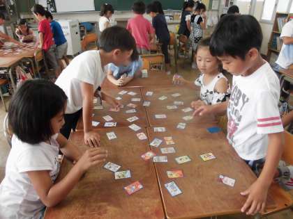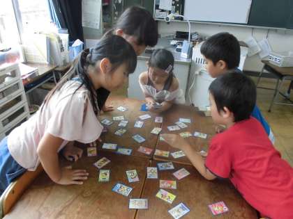7月のふれあいタイム 【7月16日(火)の浅井中小】 公開日 2019/07/16 更新日 2019/07/16 人権・いじめ対策関連 7月のふれあいタイムです。 2年生では、各学級で班に分かれて、かるたをやりました。 読み札の文をよく聞いて、集中して、絵札を見つけました。 後片付けも、みんなで協力してできました。