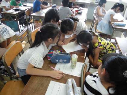 係の仕事についてそれぞれのメンバーで協力をして、紹介カードを書きました。